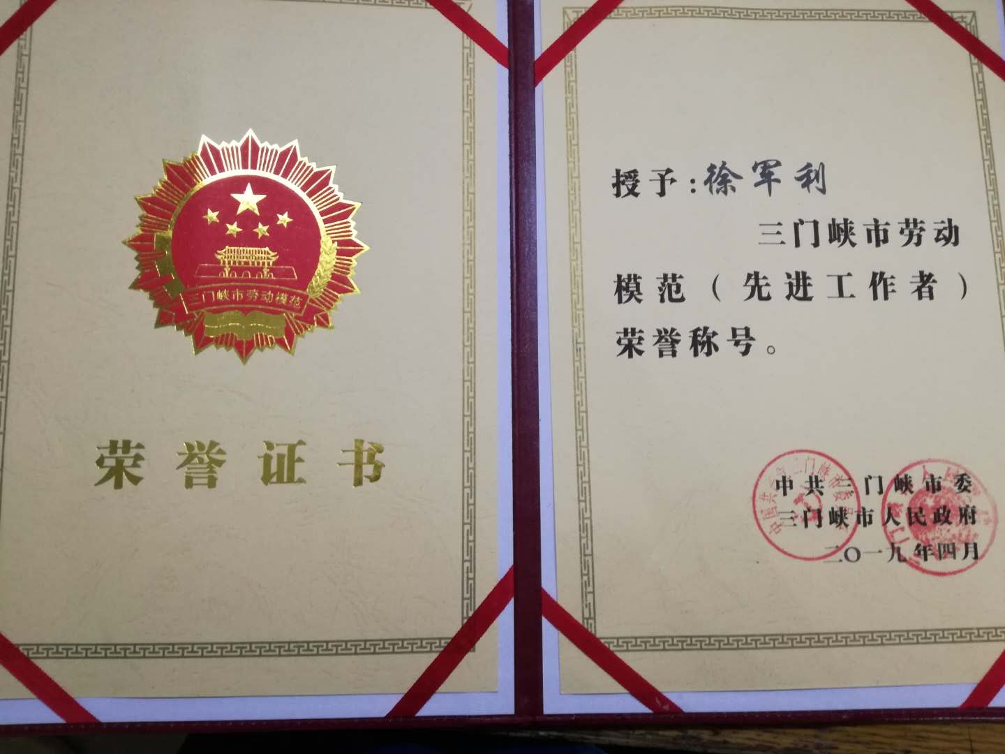熱烈祝賀昊博公司徐軍利同志獲得“三門峽市勞動(dòng)模范”榮譽(yù)稱號